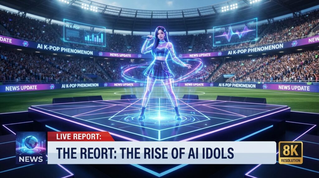 2026년 2월 8일 현재, 대한민국 연예계와 스포츠계는 과거에는 상상조차 할 수 없었던 거대한 변곡점에 서 있습니다. 불과 2년 전만 해도 ‘실험적 시도’에 그쳤던 AI(인공지능) 기술이 이제는 산업의 근간을 뒤흔들고 있습니다. 최근 빌보드 ‘핫 100’ 차트에서 인간 가수들을 제치고 3주 연속 1위를 차지한 가상 아이돌 ‘제노(XENO)’의 등장은 단순한 유행을 넘어 하나의 사회적 현상으로 자리 잡았습니다. 팬들은 이제 가수가 ‘사람’인지 ‘데이터’인지를 따지지 않습니다. 그들이 전달하는 감정과 완벽한 퍼포먼스에 열광할 뿐입니다.