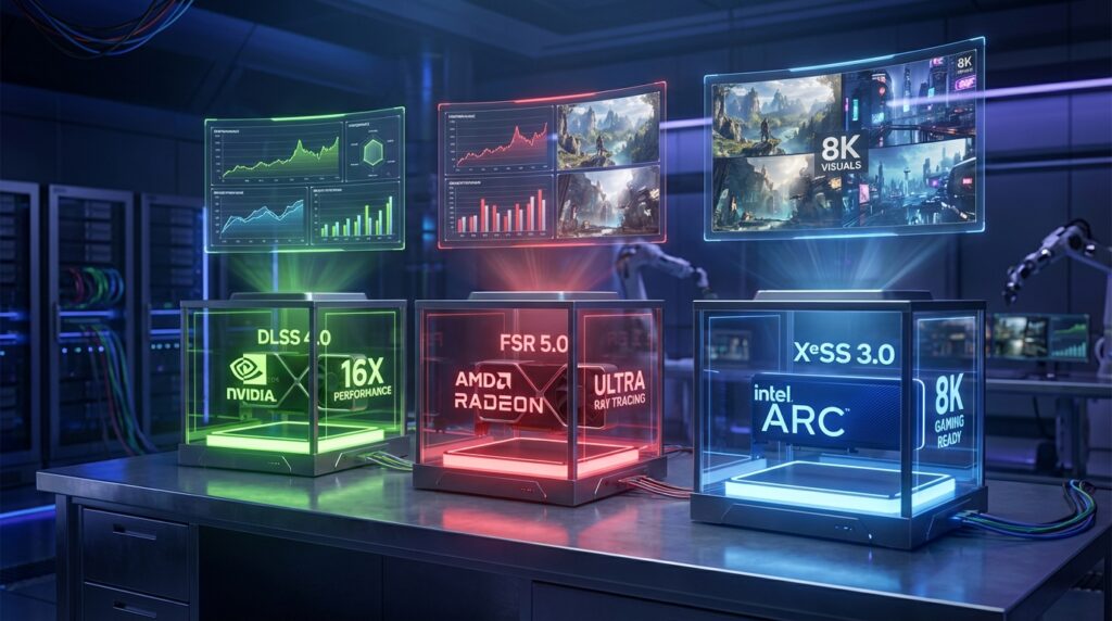 2026년 현재, 게이밍 하드웨어 시장은 과거와는 차원이 다른 변곡점을 맞이하고 있습니다. 단순히 더 많은 셰이더 유닛과 높은 클럭 속도를 경쟁하던 시대는 가고, 이제는 ‘뉴럴 렌더링(Neural Rendering)’과 ‘AI 가속’이 그래픽카드의 가치를 결정하는 핵심 지표가 되었습니다. 특히 엔비디아의 RTX 60 시리즈와 AMD의 라데온 RX 9000 시리즈, 그리고 시장의 다크호스로 떠오른 인텔의 아크 셀레스티얼(Celestial) 라인업이 격돌하며 소비자들에게는 그 어느 때보다 선택의 폭이 넓어졌습니다.