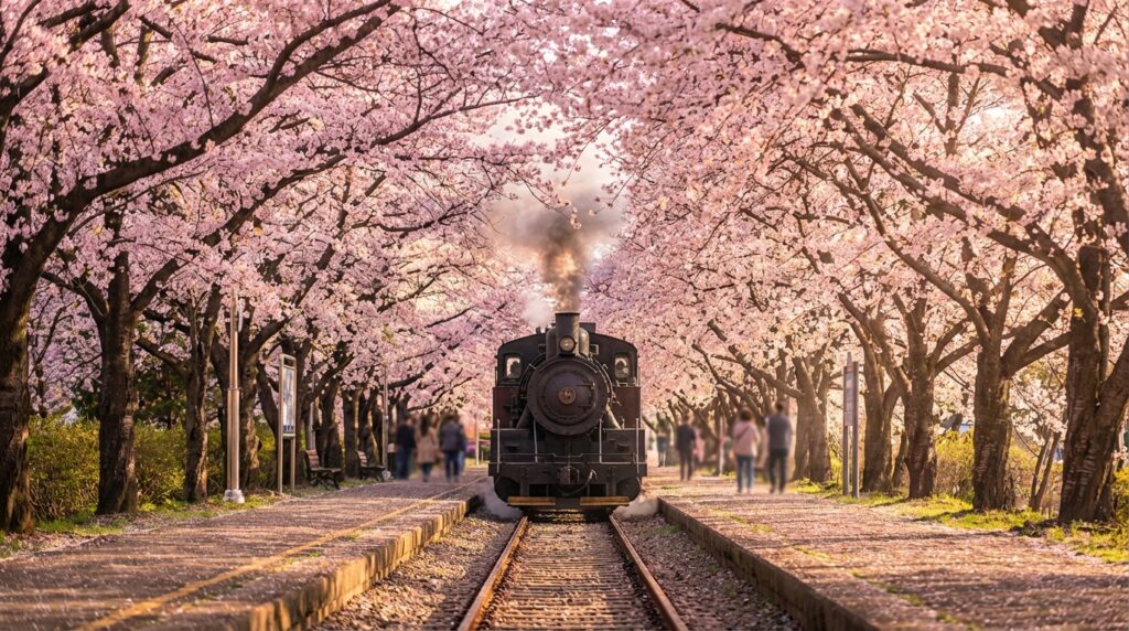 국내 최대 규모의 벚꽃 축제인 진해 군항제는 명실상부한 세계적인 관광지입니다. 수십만 그루의 왕벚나무가 일제히 꽃망울을 터뜨리는 광경은 압권입니다. 특히 여좌천 ‘로망스 다리’는 드라마 촬영지로도 유명하며, 밤이 되면 화려한 야간 조명이 벚꽃과 어우러져 몽환적인 분위기를 자아냅니다. 경화역의 철길을 따라 늘어선 벚꽃 터널은 기차와 함께 인생 사진을 남길 수 있는 최고의 포인트입니다.