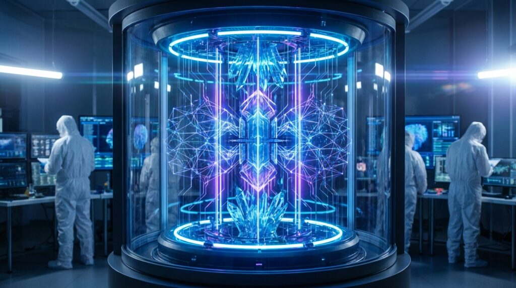 현재 가장 주목받는 기술적 성과는 초전도 큐비트의 안정화입니다. 2024년까지만 해도 1,000 큐비트 내외에 머물던 기술력은 2026년 현재 5,000 큐비트를 돌파하며 오류 정정 기술(Error Correction)의 비약적인 발전을 이뤄냈습니다. 양자 상태의 불안정성인 ‘결어긋남(Decoherence)’ 문제를 해결하기 위해 도입된 ‘위상학적 큐비트’ 기술은 연산의 정확도를 99.99%까지 끌어올렸습니다. 이는 기존 바이너리 기반 AI 모델보다 학습 속도가 약 1억 배 빠르며, 소모 전력은 오히려 1/100 수준으로 낮추는 결과를 가져왔습니다. 이제 거대 언어 모델(LLM)의 학습에 수개월이 아닌 단 몇 시간만이 소요되는 시대가 열린 것입니다.