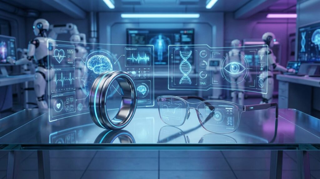 가장 주목받는 디바이스는 단연 ‘3세대 스마트 링’입니다. 과거의 스마트 링이 수면 분석에 치중했다면, 2026년형 모델들은 ‘비침습 연속 혈당 모니터링(N CGM)’ 기술을 탑재하고 있습니다. 이는 바늘로 피를 뽑지 않고도 미세 전류와 광학 센서를 이용해 혈중 포도당 수치를 추적하는 혁신적인 기술입니다.
