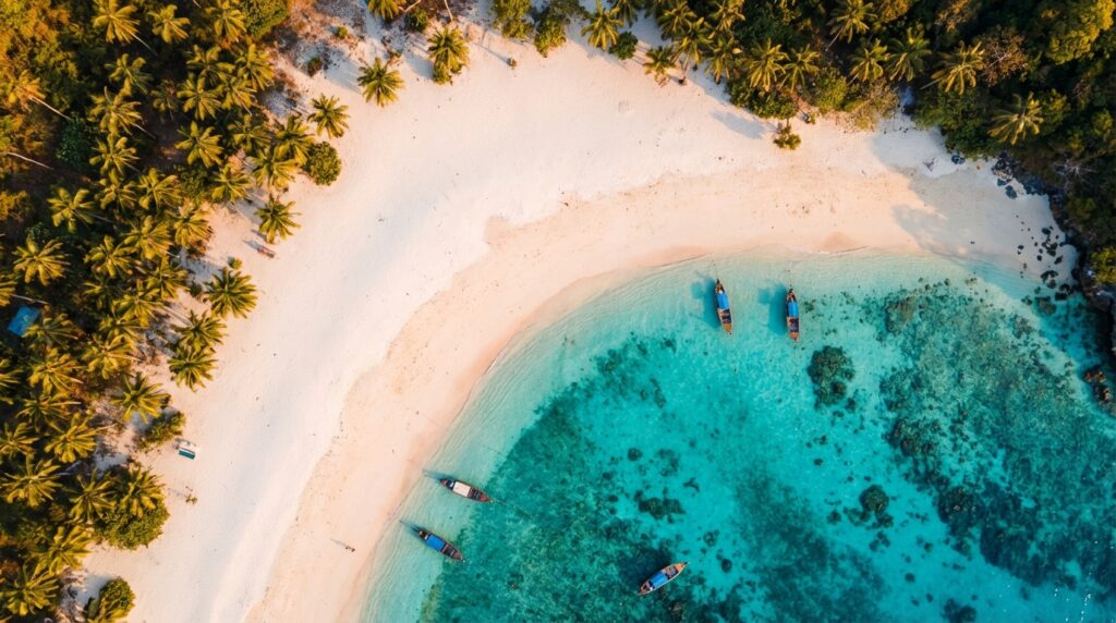 영화 ‘더 비치’의 촬영지로 유명한 피피섬은 태국 해변 여행의 결정판입니다. 2026년 들어 환경 보호 정책이 성공적으로 안착하면서 마야 베이(Maya Bay)의 생태계가 완벽히 회복되었습니다. 이제 여행자들은 더욱 맑아진 물속에서 형형색색의 열대어와 산호초를 만날 수 있습니다.