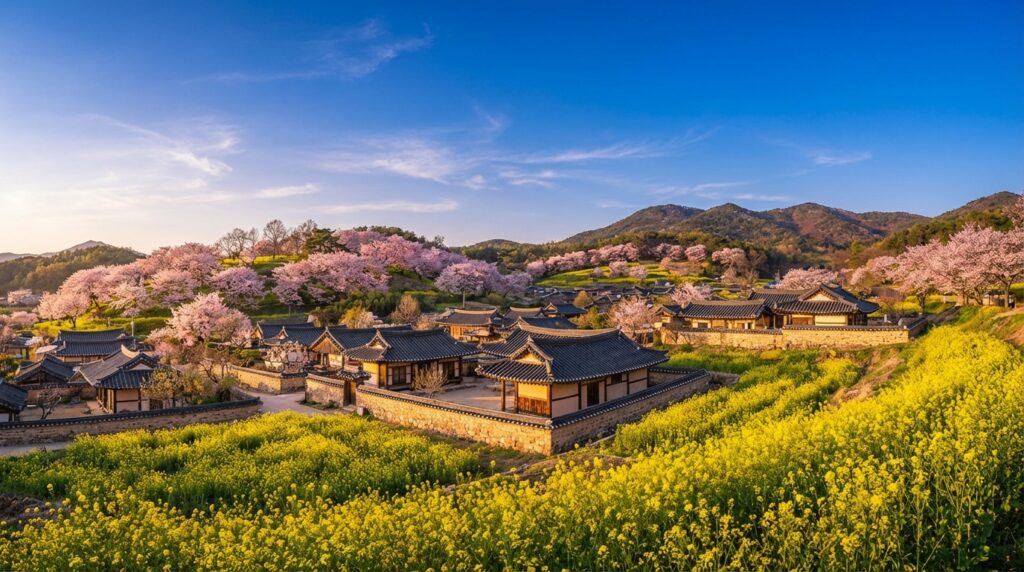 반곡마을의 암반 위로 흐르는 계곡물과 노란 산수유꽃의 조화는 사진작가들이 꼽는 최고의 출사지입니다. 이곳에서는 ‘산수유 차 체험’뿐만 아니라 지리산 온천랜드에서의 노천욕을 통해 겨우내 쌓인 피로를 풀 수 있습니다. 또한, 인근 화엄사의 홍매화는 산수유와는 또 다른 진한 붉은 매력을 발산하며 방문객들의 눈길을 사로잡습니다. 현지인들이 추천하는 산채비빔밥과 구례 오일장의 활기찬 분위기도 놓치지 마세요.
