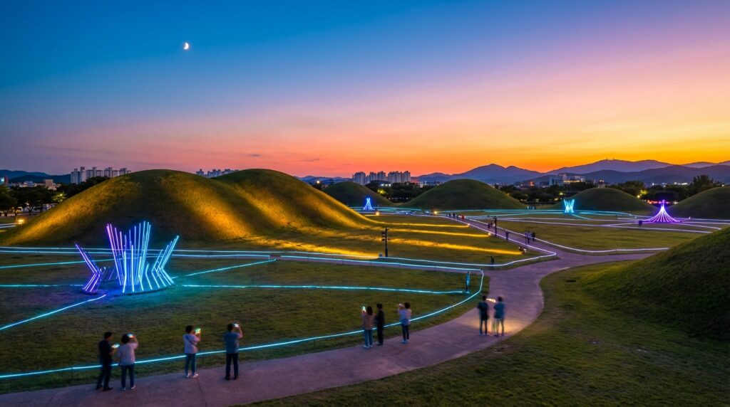 경주는 2026년 현재, 과거와 미래가 공존하는 가장 대표적인 도시로 손꼽힙니다. 단순히 유적지를 관람하는 수준을 넘어, 증강현실(AR)과 가상현실(VR) 기술이 접목된 ‘디지털 황룡사’와 ‘신라 왕경 복원 프로젝트’를 통해 1,300년 전의 화려한 모습을 생생하게 체험할 수 있습니다. 특히 대릉원 일대에서 펼쳐지는 야간 미디어 파사드 공연은 역사적 공간에 현대적 예술을 입혀 방문객들에게 잊지 못할 시각적 경험을 제공합니다. 황리단길의 세련된 카페들과 함께 경주의 깊은 밤을 즐겨보세요.