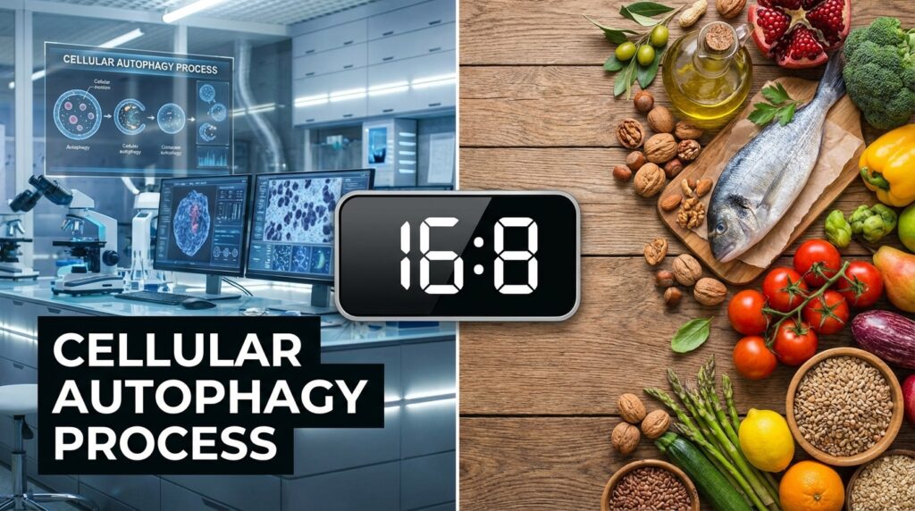 간헐적 단식의 가장 핵심적인 의학적 원리는 ‘자가포식(Autophagy)’입니다. 이는 2016년 노벨 생리의학상을 통해 그 가치가 입증된 개념으로, 우리 몸이 일정 시간 동안 영양 공급을 받지 못하면 세포 내의 노폐물과 손상된 단백질을 스스로 분해하여 에너지원으로 재활용하는 현상을 말합니다. 단식 후 약 14시간에서 16시간이 지나면 이 자가포식 작용이 극대화되며, 이는 암 예방, 치매 방지, 그리고 전반적인 노화 지연에 결정적인 역할을 합니다.