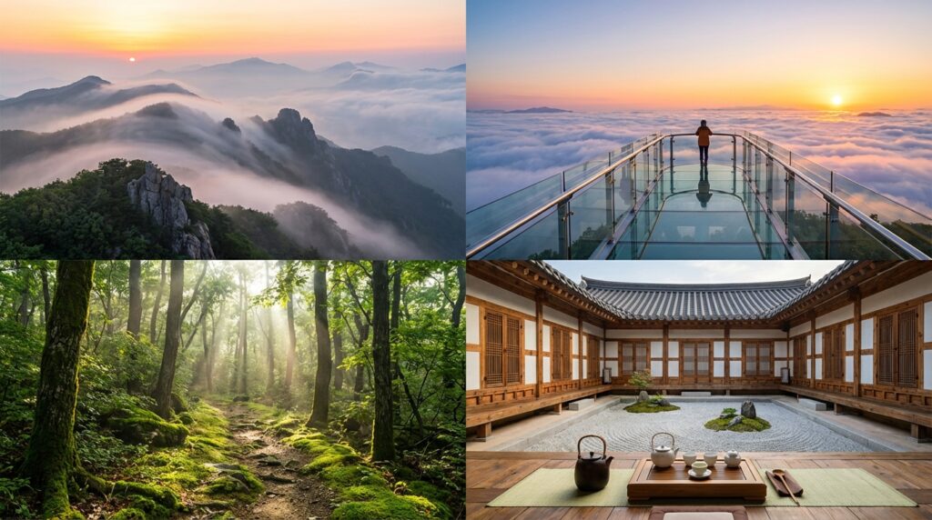 바쁜 일상 속에서 우리는 가끔 숨이 턱 끝까지 차오르는 순간을 마주합니다. 그럴 때 가장 먼저 떠오르는 곳이 바로 강원도입니다. 2026년 2월, 늦겨울의 정취가 남아있는 강원도 평창과 정선은 단순한 관광지를 넘어 지친 영혼을 어루만지는 치유의 공간입니다. 이번 기사에서는 대한민국 최고의 여행 기자가 직접 발로 뛰며 찾아낸, 진정한 ‘쉼’이 있는 강원도 힐링 코스를 소개합니다. 강원도의 공기는 도시의 그것과는 차원이 다릅니다. 폐부 깊숙이 들어오는 차갑고도 맑은 공기는 그 자체로 보약이 됩니다. 특히 평창과 정선은 해발 고도가 높아 구름 위를 걷는 듯한 신비로운 경험을 선사합니다.